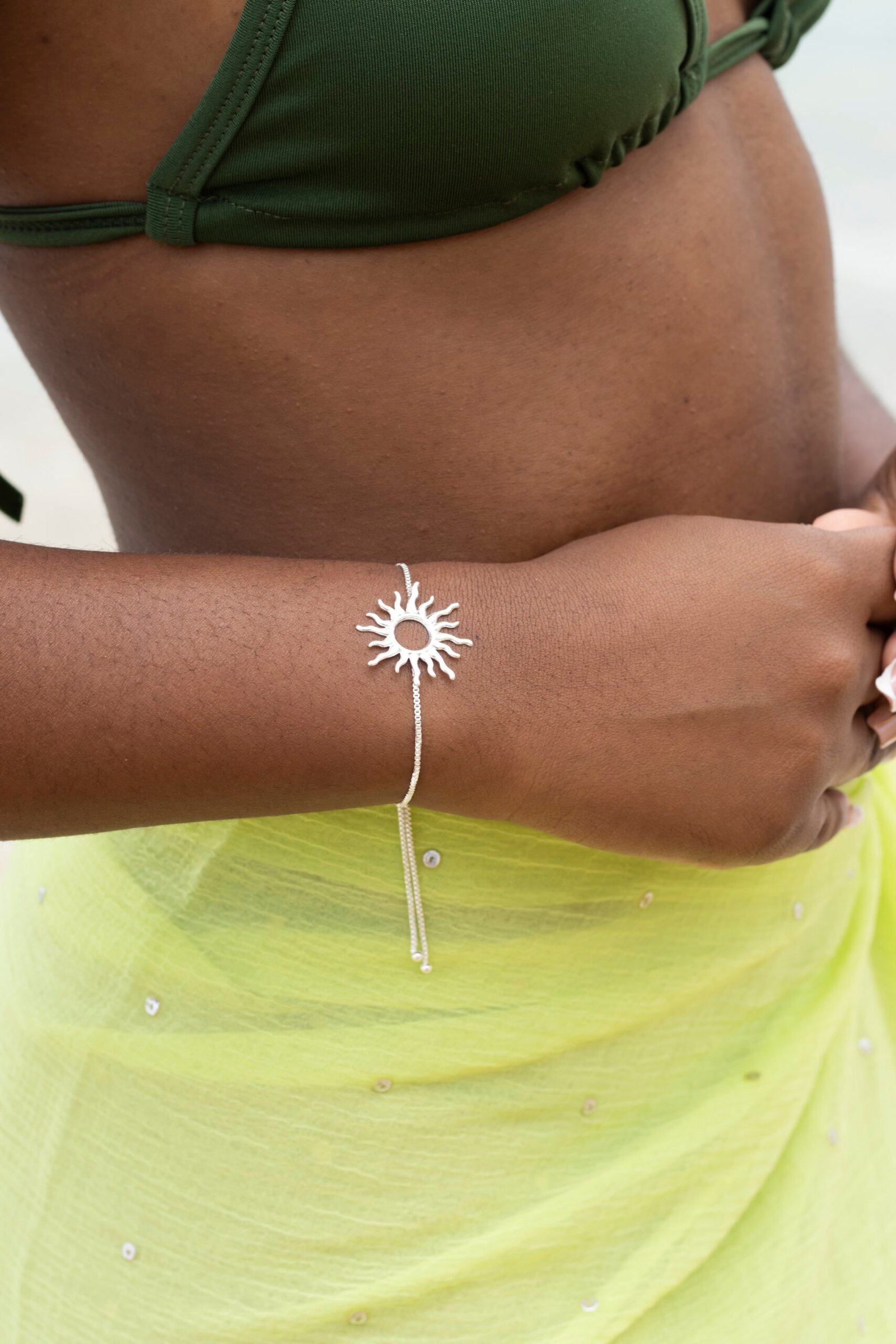 As pulseiras da campanha TRÓPICOS foram desenvolvidas para refletir a energia do sol e a leveza dos dias de verão. Com design delicado e acabamento elegante, a Pulseira Sol é uma peça versátil que ilumina o visual com sofisticação natural.
